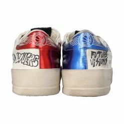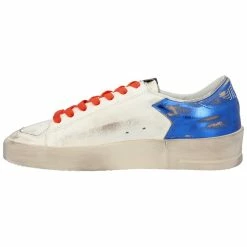 - Stardan Leather Sneaker In White/Silver/Royal Blue Leather With Distressed Design