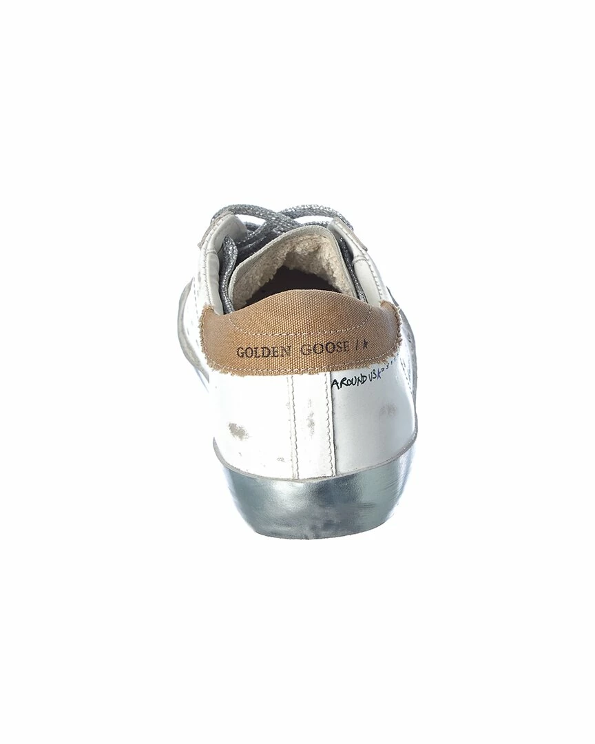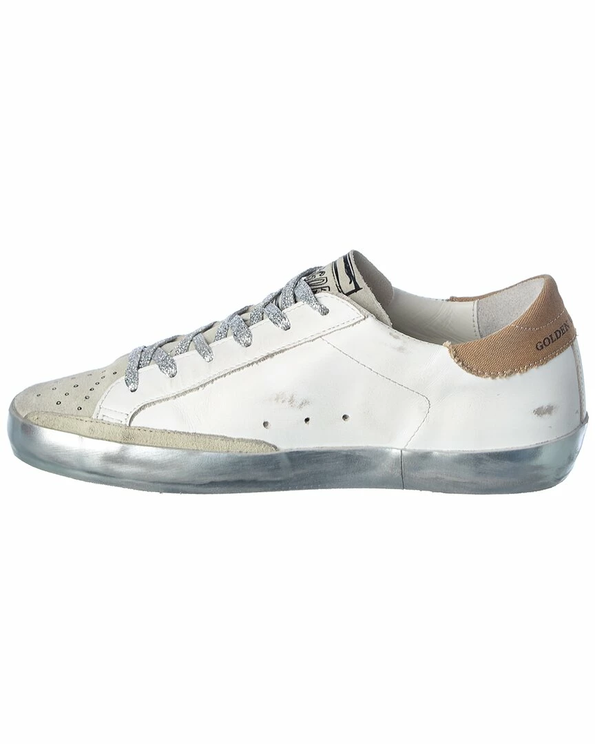- Superstar Leather & Suede Sneaker In White Leather And Suede With Distressed Design, Canvas Accent And Metallic Laces